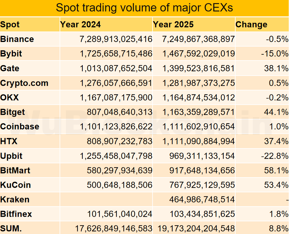 2025 CEX Annual Report: Binance Maintains Spot Market Dominance, While MEXC, Bitget, and Gate Show Strong Overall Growth