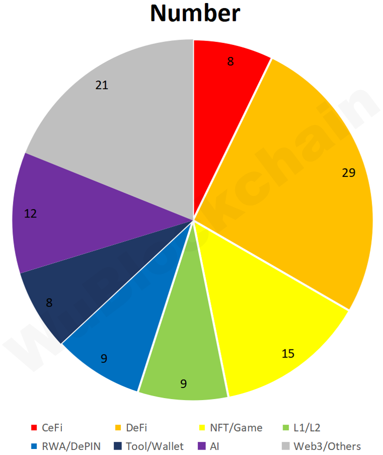 According to RootData statistics, there were 111 publicly disclosed Crypto VC investment projects in July, an increase of 12% month-on-month (99 projects in June 2024) and an increase of 35% year-on-year (82 projects in July 2023). Note: Since not all fundraisings are announced in the same month, the above statistics may increase in the future. The breakdown by sector is as follows: